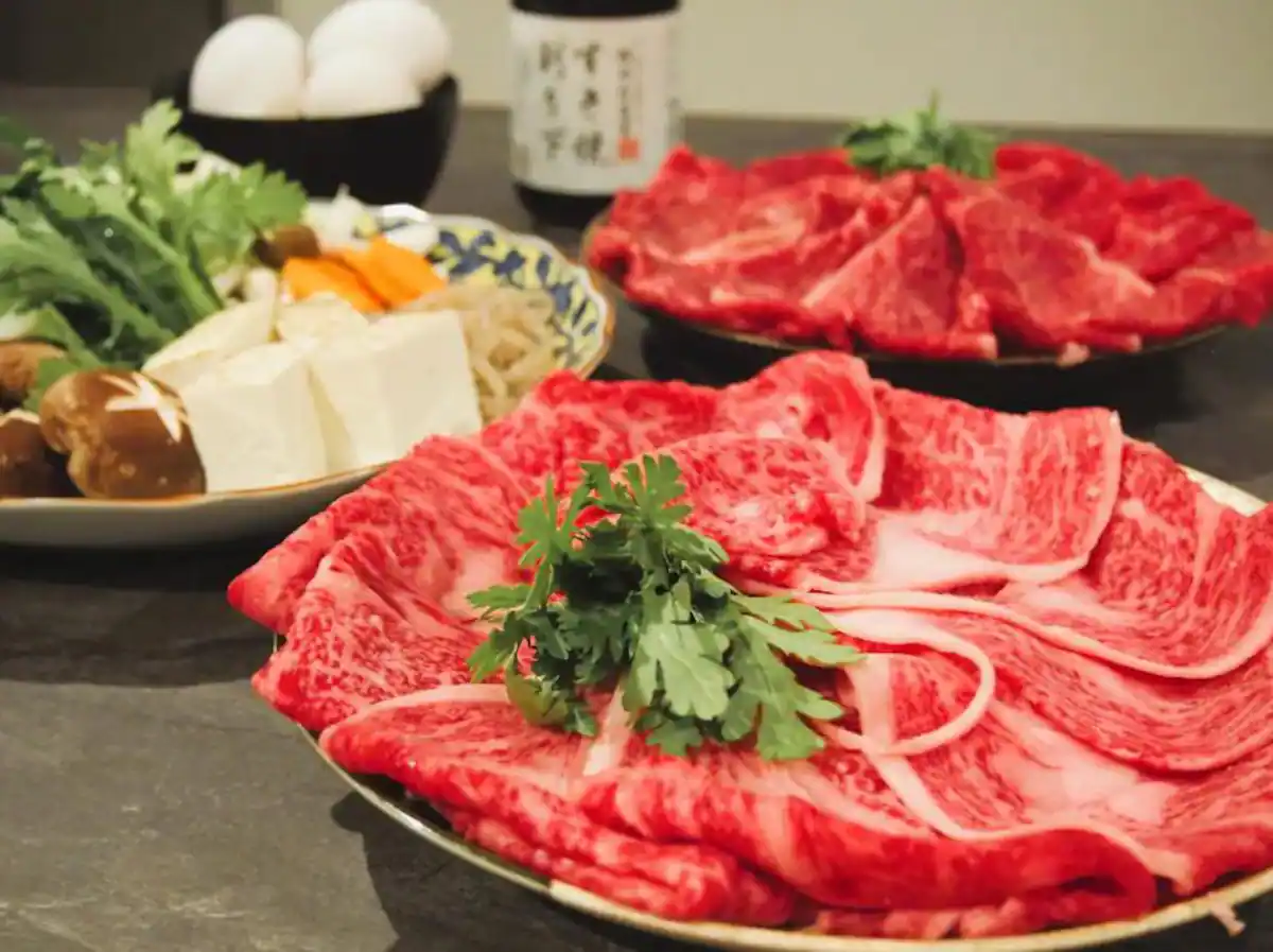 旨みの元であるアミノ酸を多く含み、柔らかくきめ細やかな肉質が特長の赤城牛を使用したすき焼きを堪能。